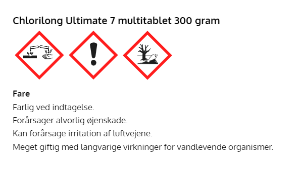 1 tablet til 30m3: Tabletten indeholder ”stabilisator” og kloren er beskyttet mod nedbrydning af solens uv stråler og det giver store fordele – mindre klorforbrug og længere intervaller mellem dosering – en rigtig god løsning.