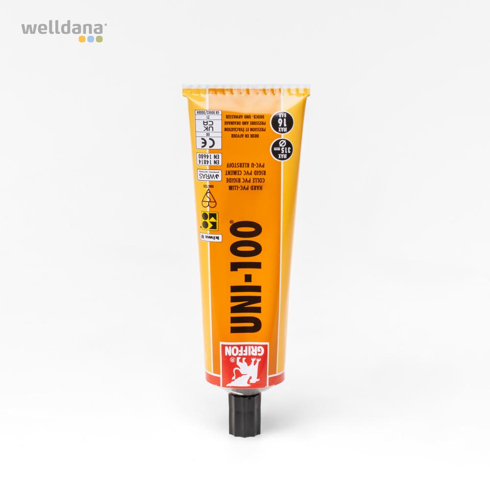 Griffon UNI-100® lim er til fast PVC/ABS, med gode spaltefyldende egenskaber, som kan anvendes hårde PVC/ABS plasttyper. Er ideel til limning af hårde PVC rør bl.a. i forbindelse med pool/spa.