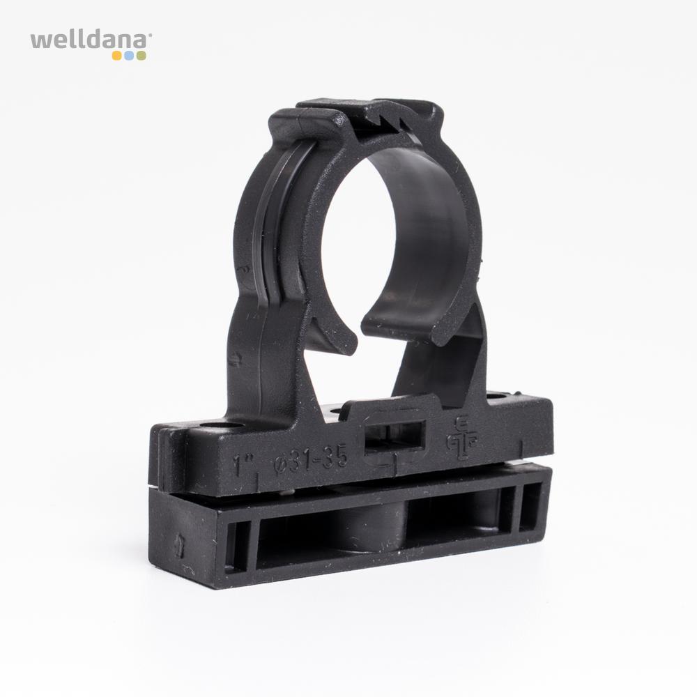 Welldana® Rørholder i PP plast med kliklås og skruehuller, for perfekt ophæng og fastgørelse af rør og slanger. Leveres løs, uden skruer, i mange størrelser.