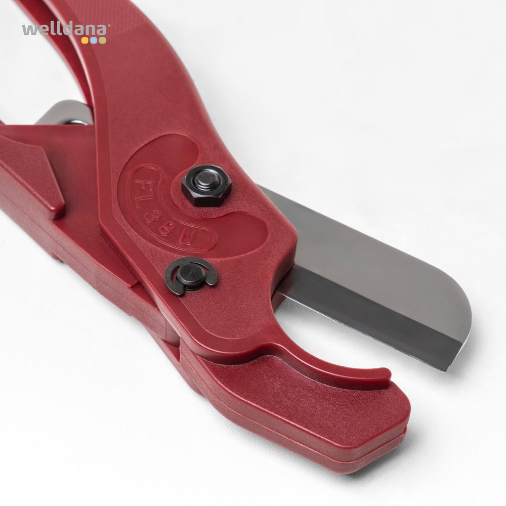 Let og kompakt universal saks til klipning af feks. pexrør, plast- og gummislange, uden stålarmering, i størrelse op til 38 mm. Super skarpt blad, der giver pænt og rent snit. Smutter let ned i en tommestok lomme.