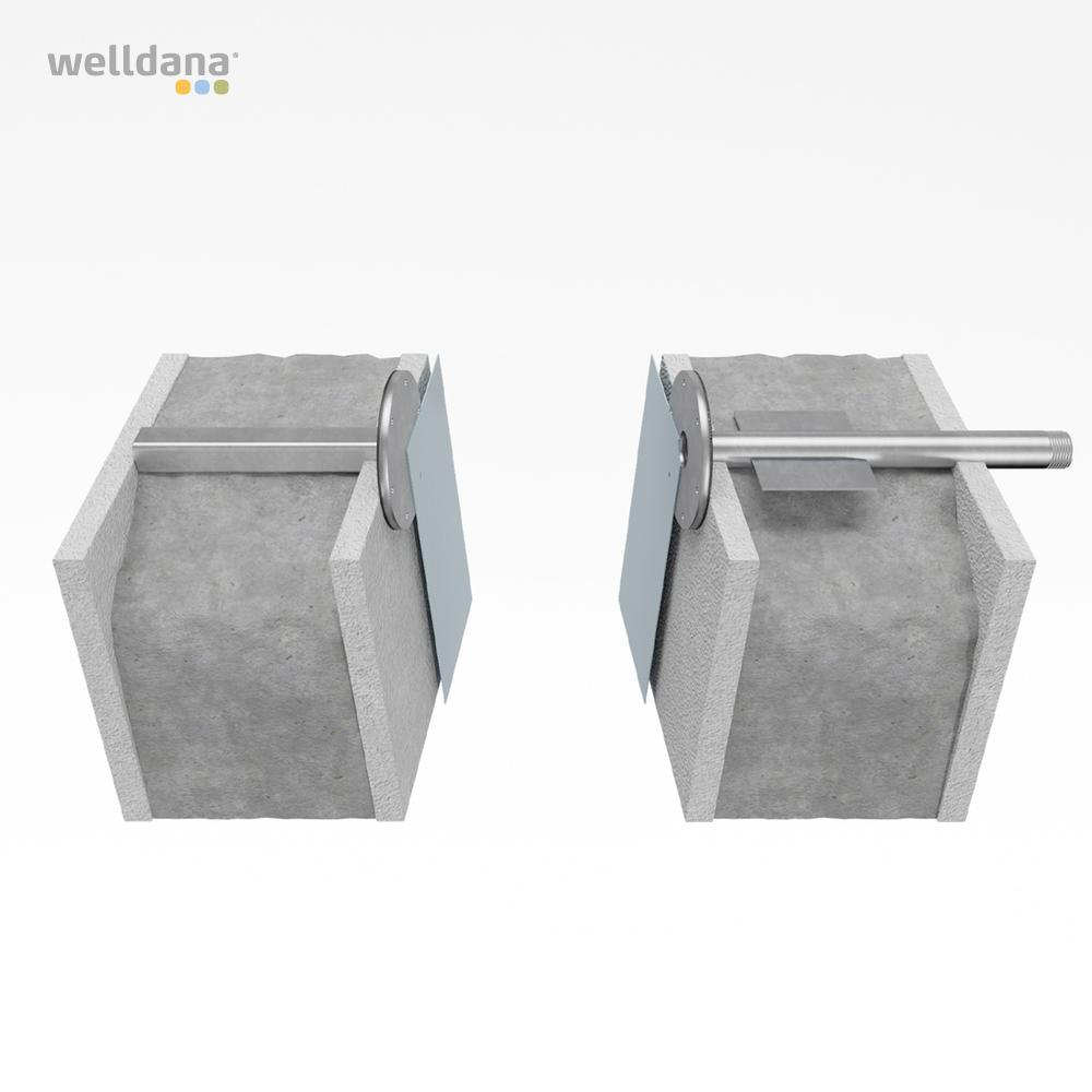 Væggennemføring til betonpools: Denne skal bruges til bassiner, hvor den skal eftermonteres (efter støbning) Væggennemføringer kræver boring gennem væggen. Dette kan stadig gøres, selvom folien/fliserne allerede er på plads. Passer til alle pool typer.