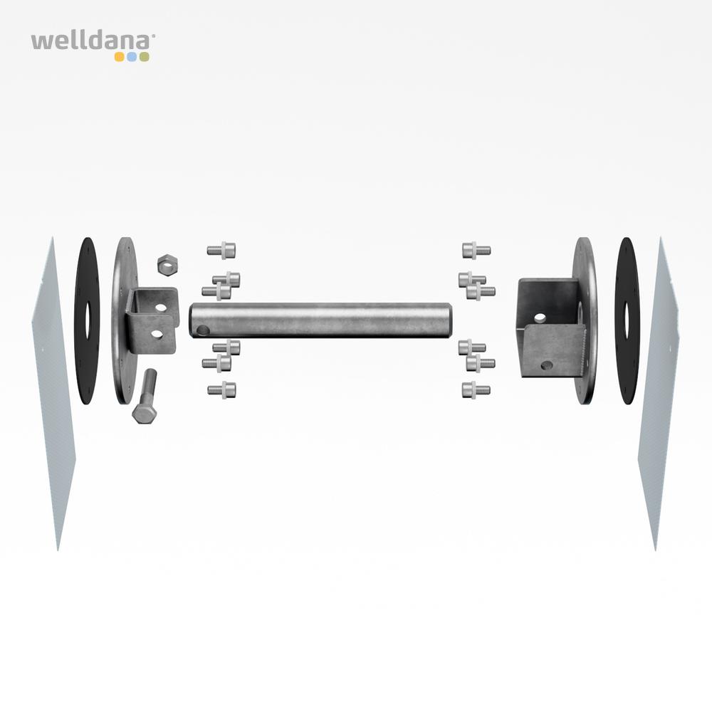 Ophængsplader til alle typer pools: Disse skal bruges til eksisterende pools, der allerede er færdige med folie/fliser. Boring i væggen er ikke nødvendig. De rustfri stål ophængsplader installeres mellem toppen af poolvæggen og kantstenene. Kablet føres i en integreret rustfri stålkabelkanal på ophængspladen.