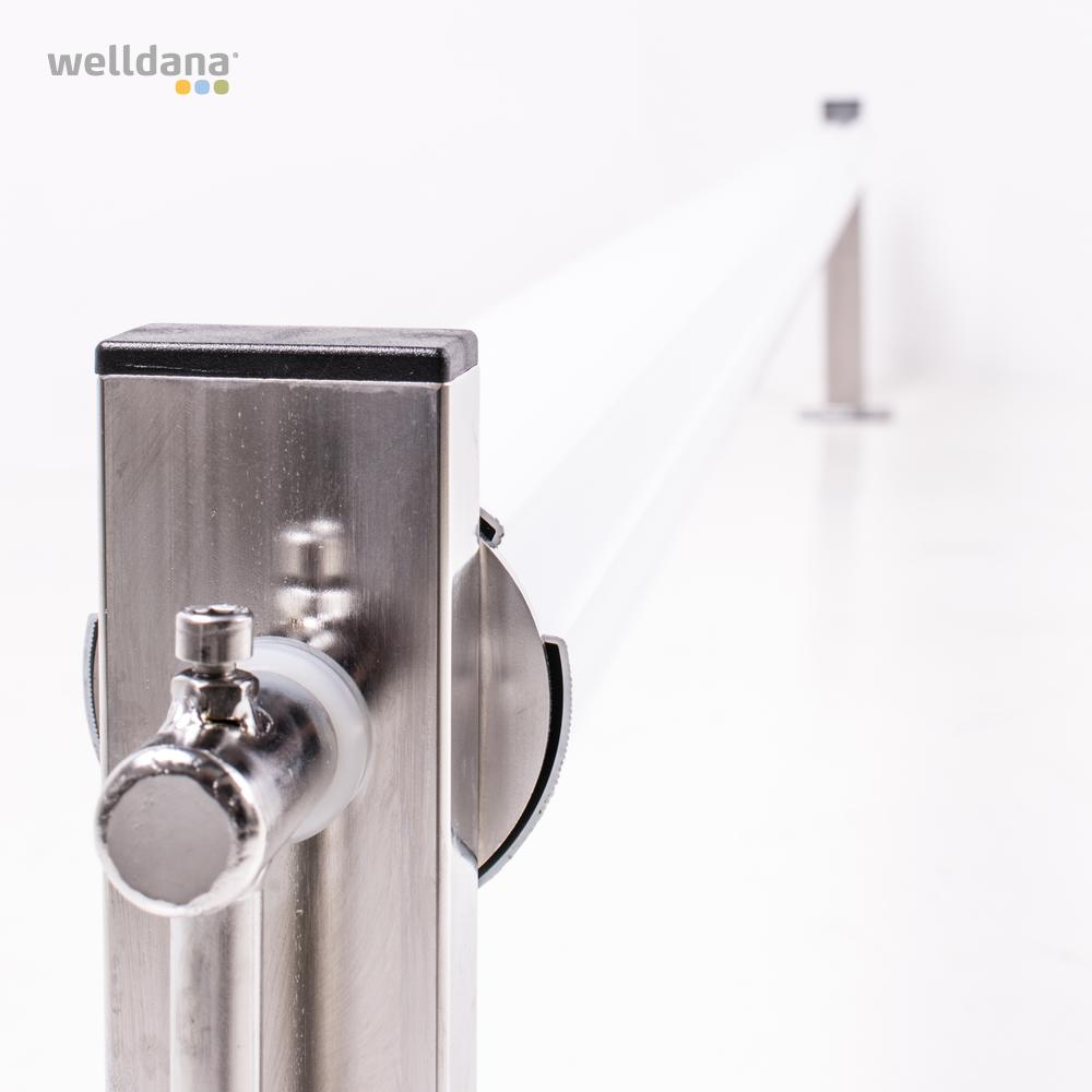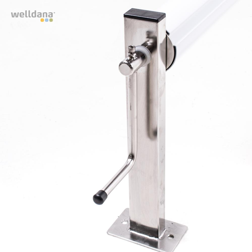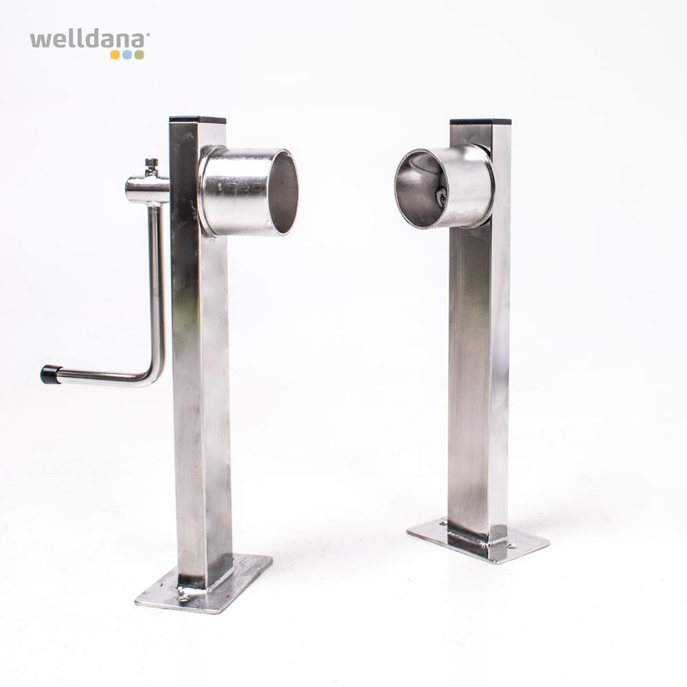 Welldana® Rustfri oprulningsstativ for termodækken til pool. Produceret i kraftig og solid AISI 316 stål med plast bøsninger og beslag for 3” teleskoprør. Ideel for indvendig og udendørs pool cover, der ikke skal flyttes. Leveres uden teleskoprør (32-001003) og bolte for fastgørelse.