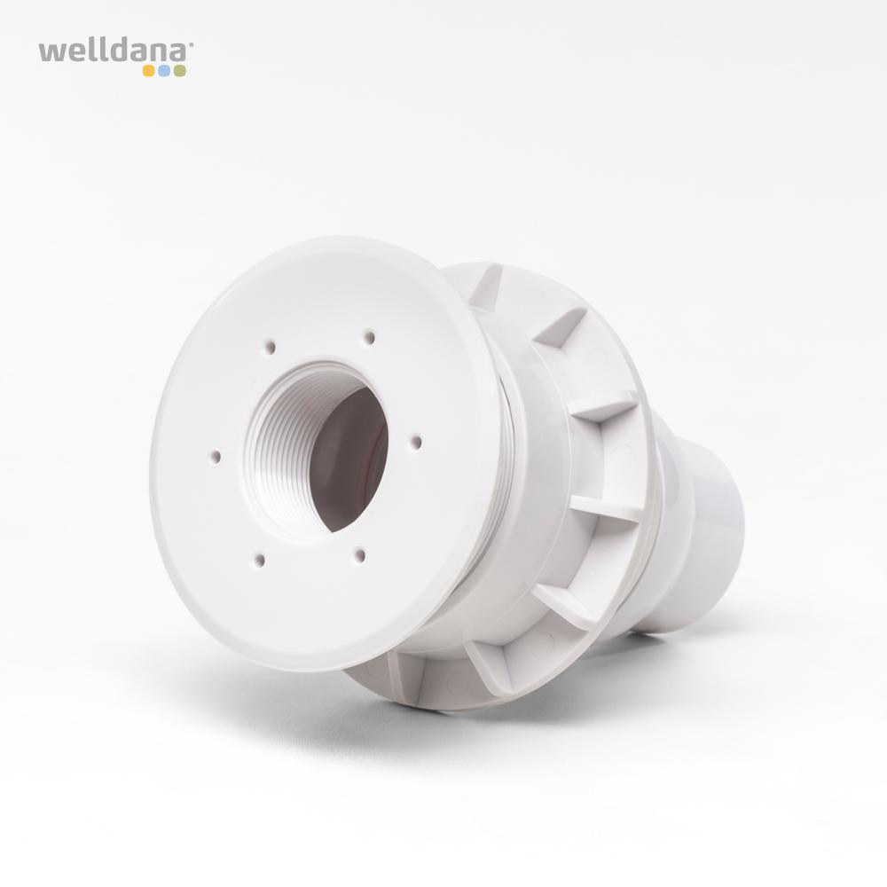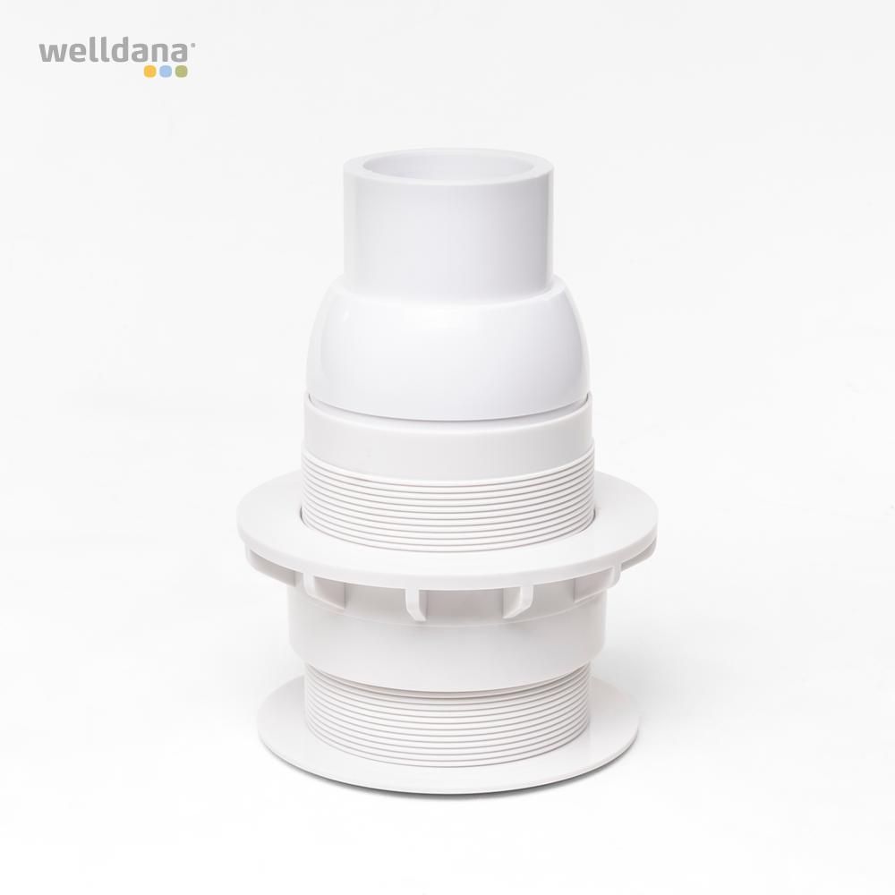 Væg gennemføring og monteringsbeslag for Adagio+ LED pærer, til stål-, polyester-, glasfiber- og liner pool.Leveres komplet med endedæksel, skruer, silikone pakning og kabelgennemføring.
