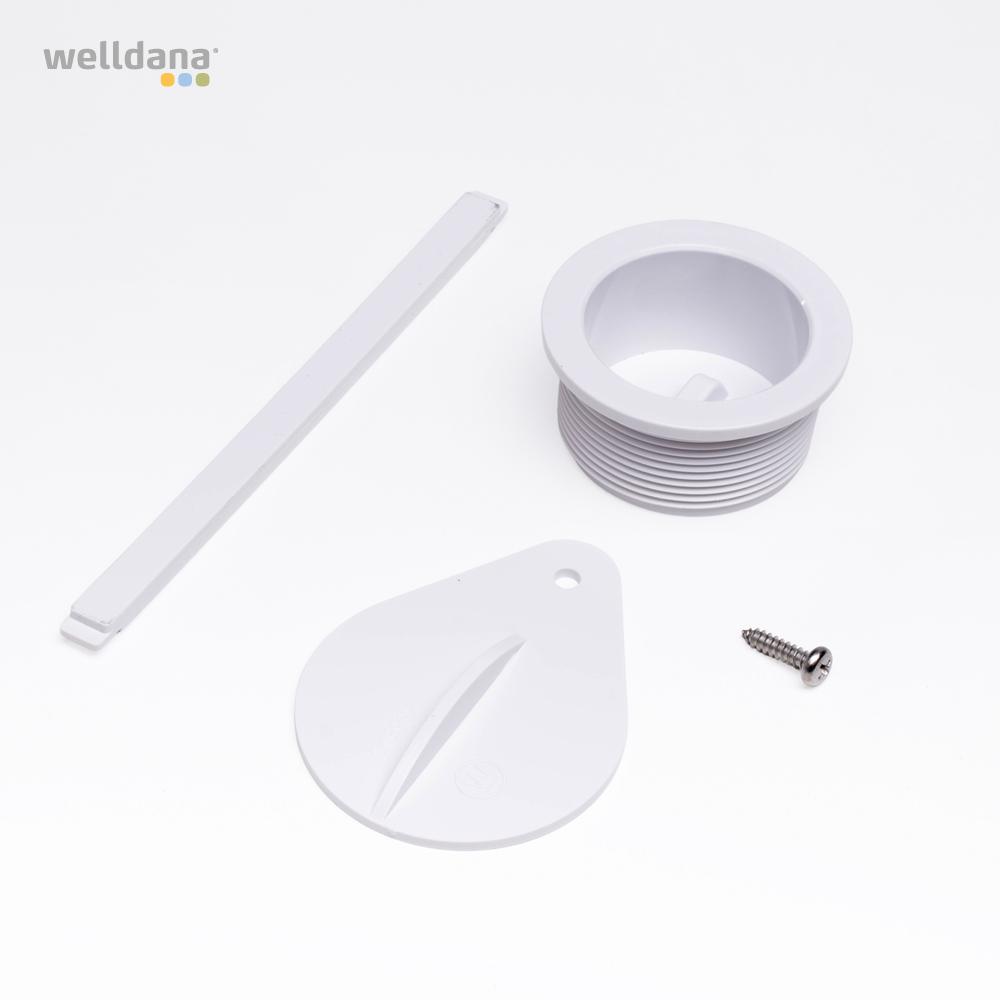 Standard skimmer fra Hayward/Cofis til alle pooltyper. Der medfølger pakninger, hvis den skal monteres i en pool med liner.