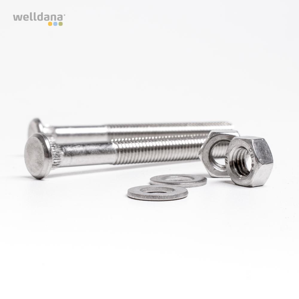 Skruesæt til SS trin AISI304 2xskrue,2xskive,2xømtrik antal