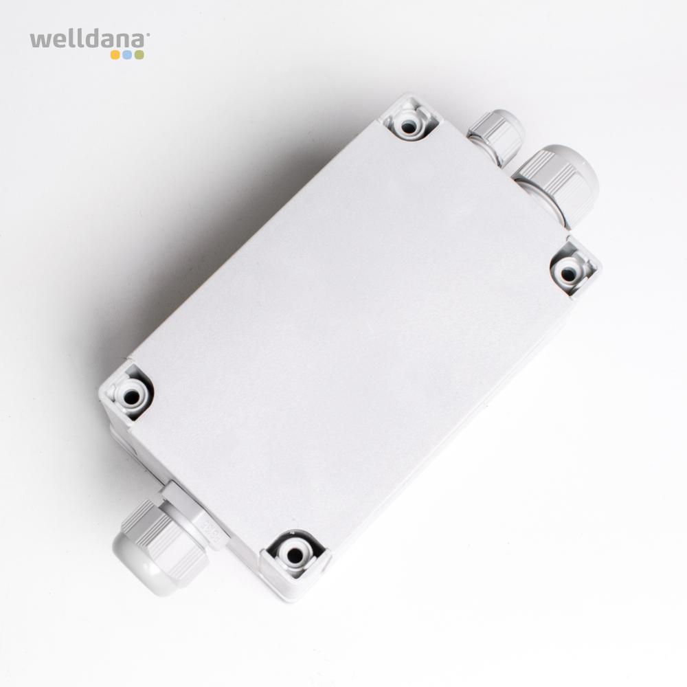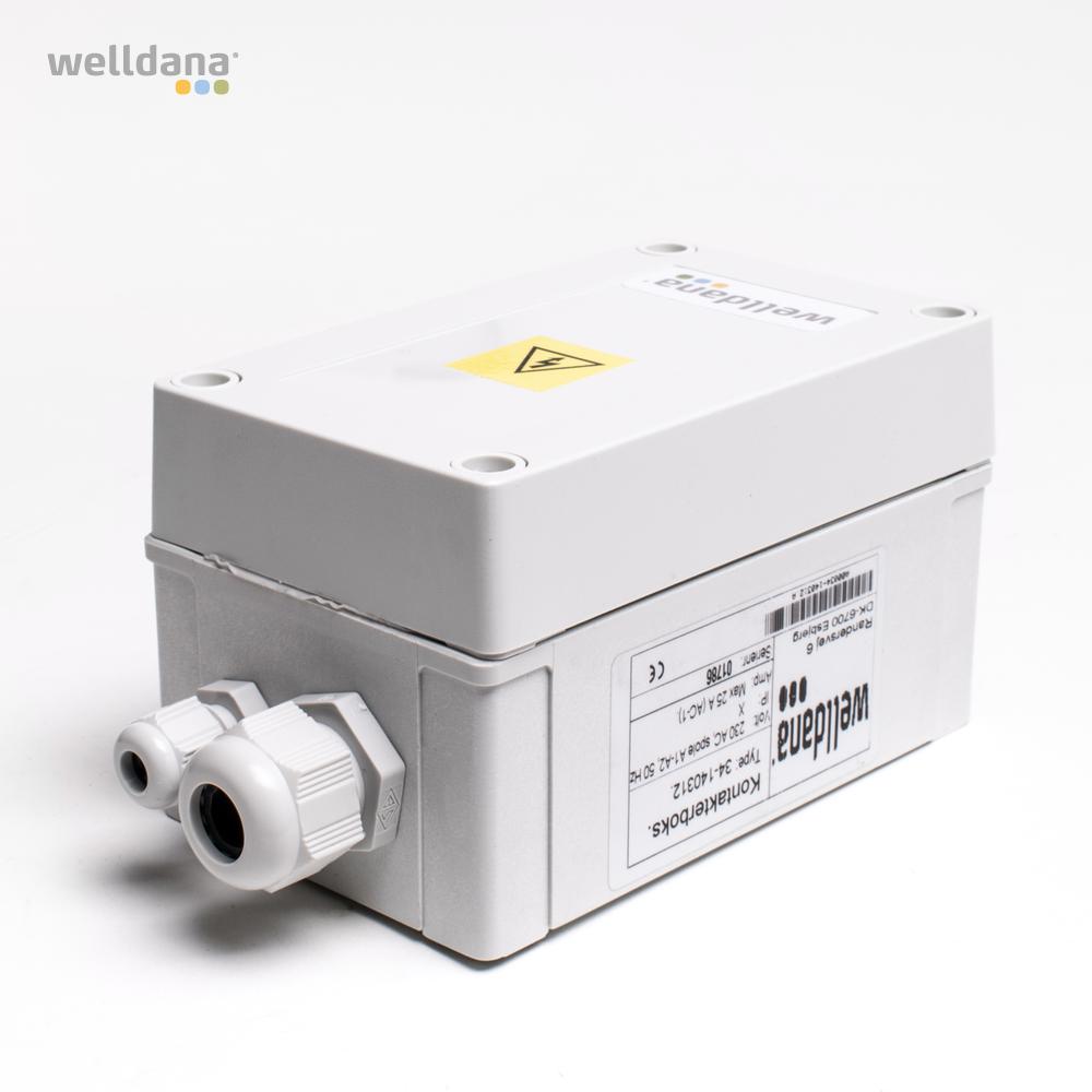 Welldana® Kontakterboks for tilslutning af 230v / 400v elvarmer op til 12 kW. Leveres komplet med PG kabelforskruninger i hvid PVC hus med gummipakning. IPx5 beskytte.