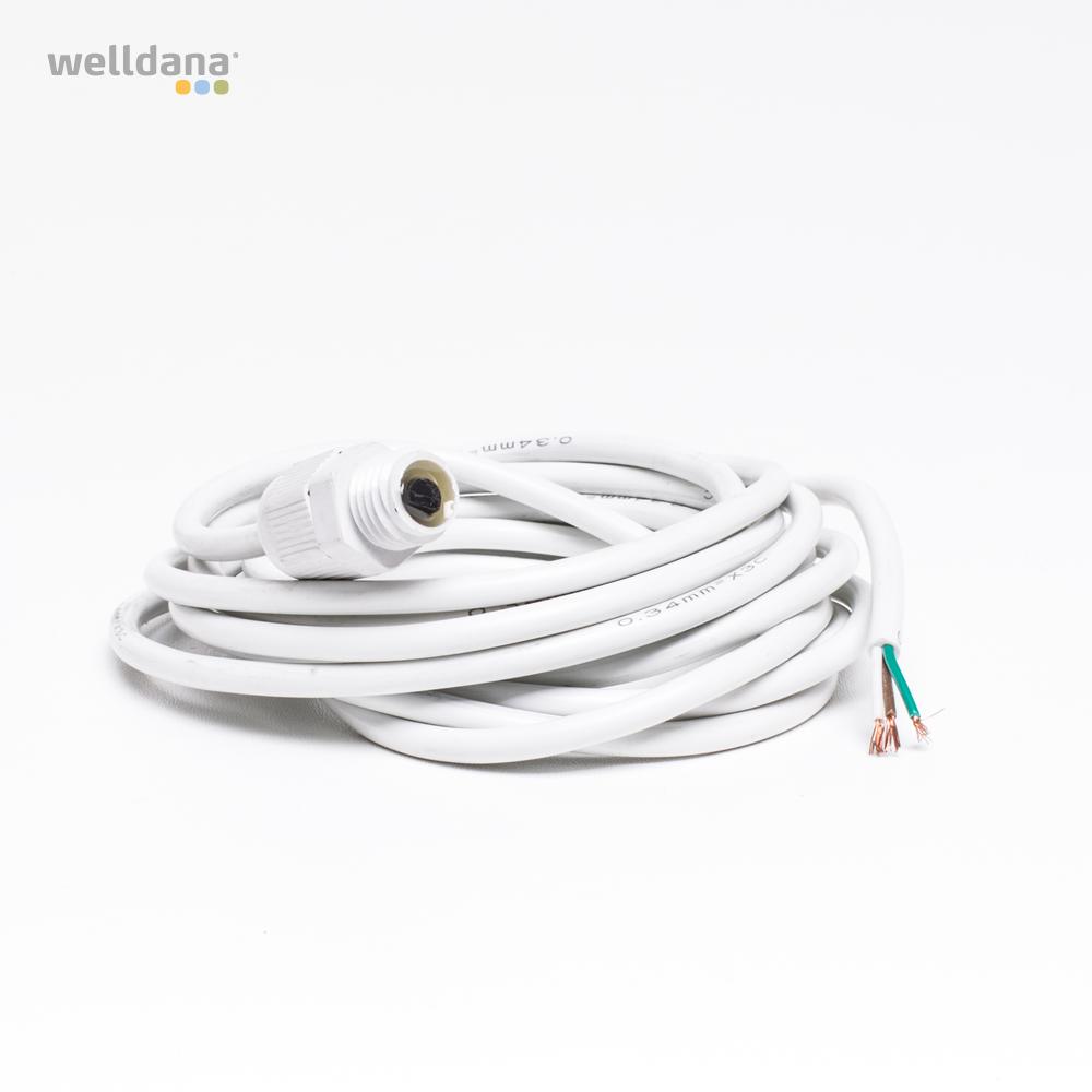 Temperaturføler i bedste kvalitet, for korrekt temperatur indikation med minimal tolerance, er indbygget i PG7 forskruning og passer til alle Welldana® spa styringer. Leveres med 2,5 meter kabel, som kan forlænges med et passende kvadrat. Vi anbefaler at isolere rundt om føleren, for at undgå udefra påvirkende temperatursvingninger.