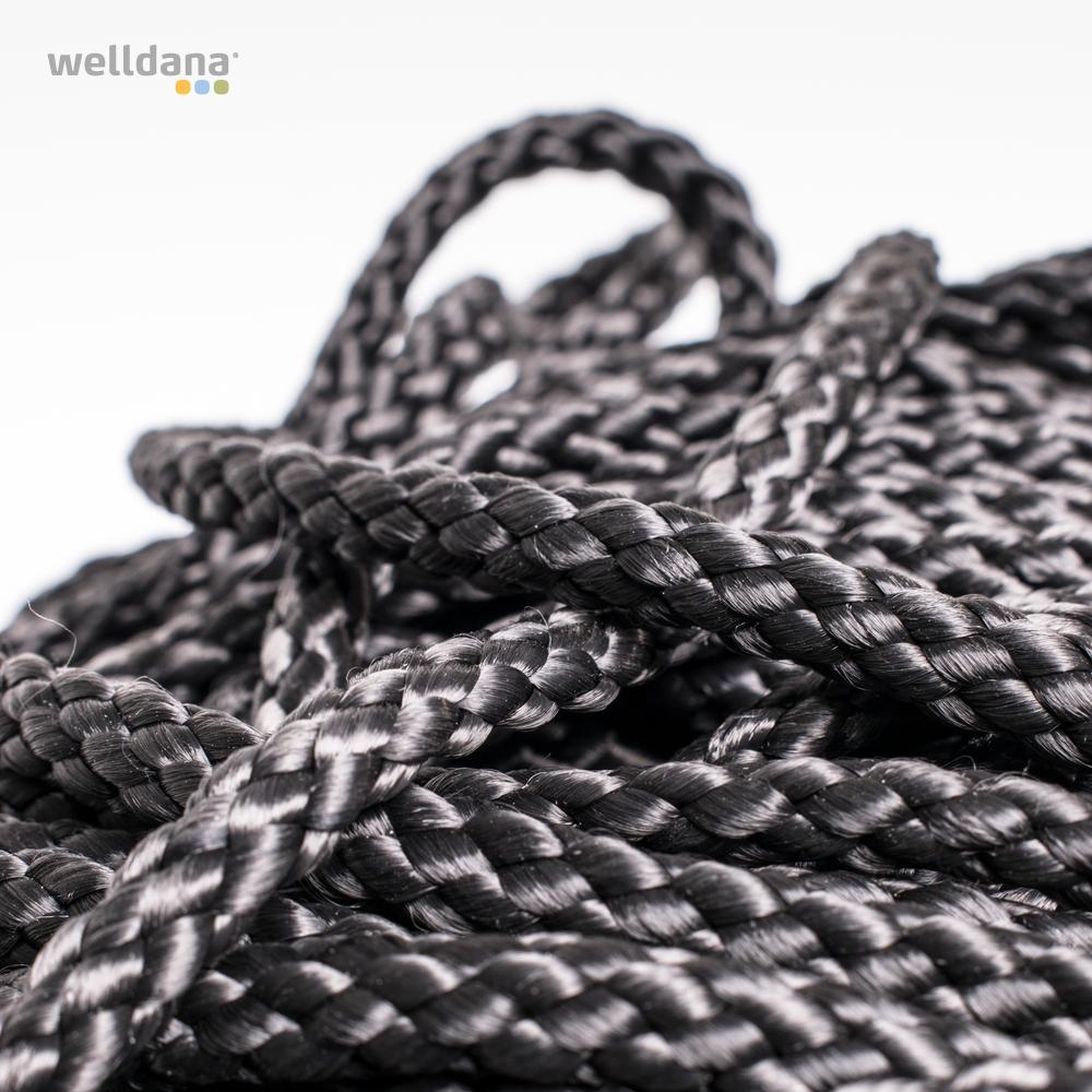 Sort 5 mm nylonbånd. Ideel til vandret sikring af solvarmepaneler.