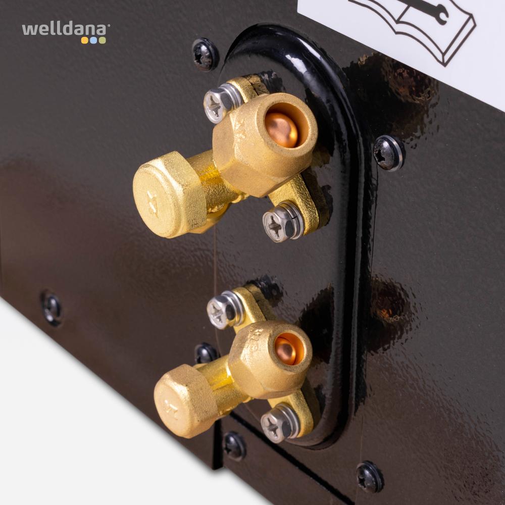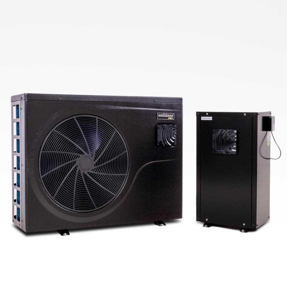 Welldana® Split varmepumpe til indendørs pools der bruges hele året. Drift ned til – 15°C. Varmepumpen kan også bruges som kølemaskine, den kan køle ned til + 8 grader.