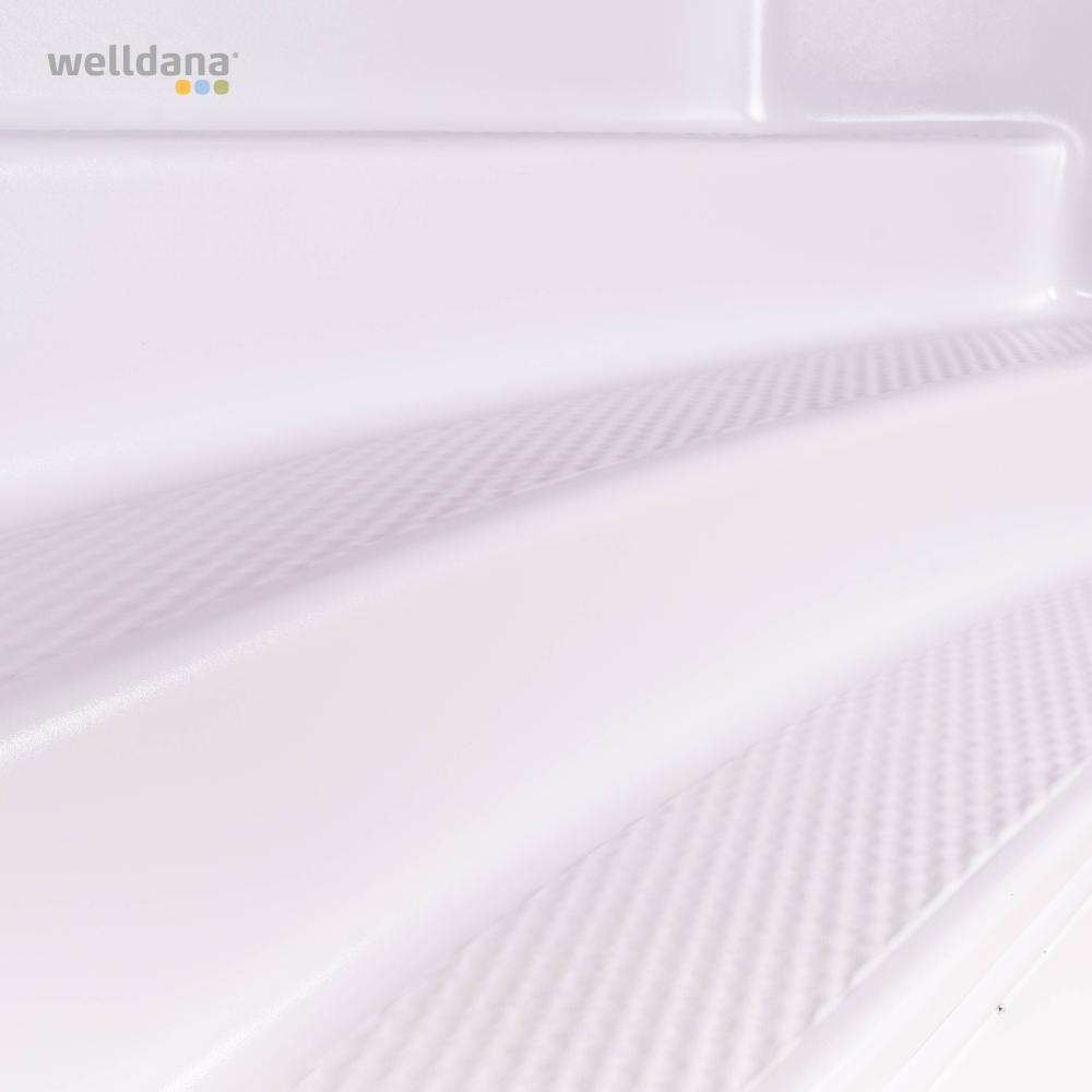 Vi anbefaler hvide trapper til blå pools, for en god kontrast. Vælges der eksempelvis blå trapper til blå pools, skal der forventes nuance forskel ved montering og øget forskel på sigt, da materialerne falmer forskelligt.
