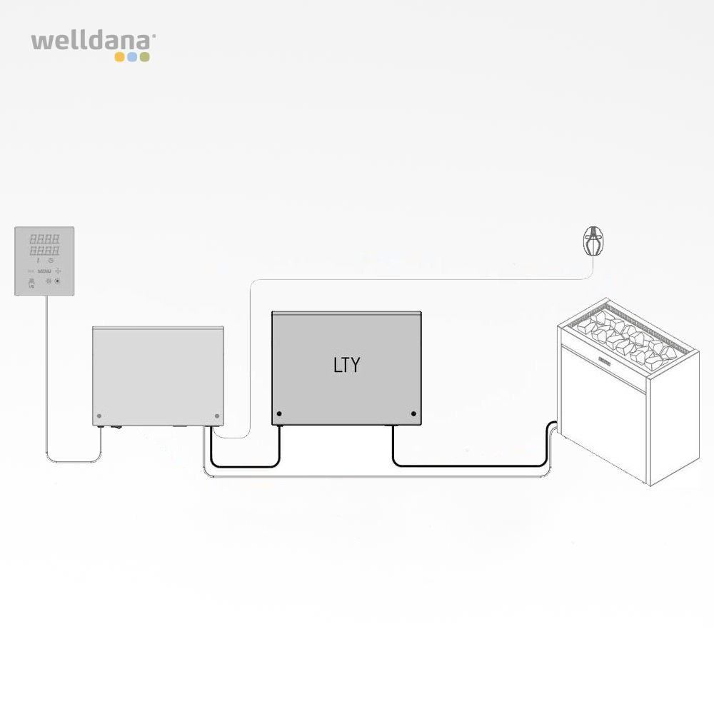 Relætavle til udvidelse af saunastyringer. Bruges til ovne med stort strømforbrug. Relætavlen bruges til styring af elektriske varmeapparater og dampmaskiner eller kombinationsvarmere i offentlige saunaer i forbindelse med Harvia C90, C105S, Griffin eller Xenio styreenhed. En Relætavle virker kun sammen med styreenheder, ikke som en stand-alone enhed