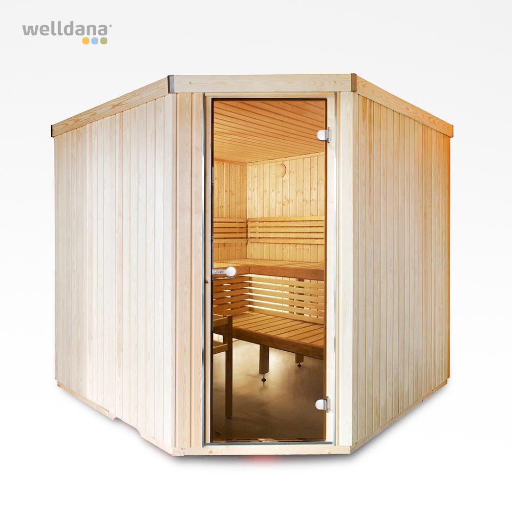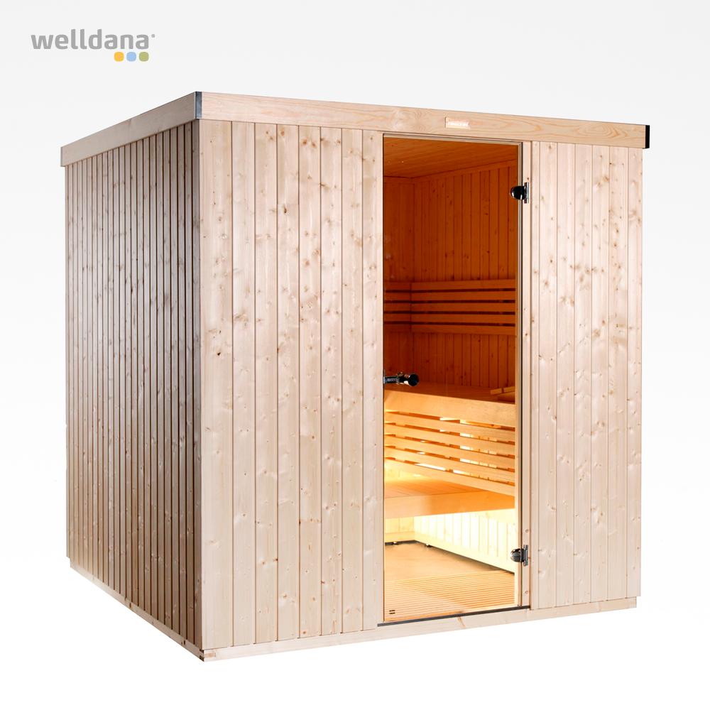 Harvia Variant Line saunakabine serie er designet i moderne finsk stil, ergonomisk, med det bedste interiør og efter de originale finske saunatraditioner. Leveres standard komplet i en høj grantræ kvalitet og med en passende størrelse elektrisk saunaovn med lavasten, betjeningspanel, lys, nakkestøtte, glasdør og tilbehørssæt. Kabinen er forholdsvis let at opstille, kræver min lofthøjde på 215 cm. Alle modeller tilbydes også i træsorterne: fyr, asp, elletræsamt varmebehandlet asp. Forhør Welldana® salgsteam om tilbud i de forskellige træsorter og udstyrs muligheder.