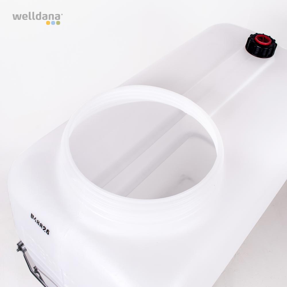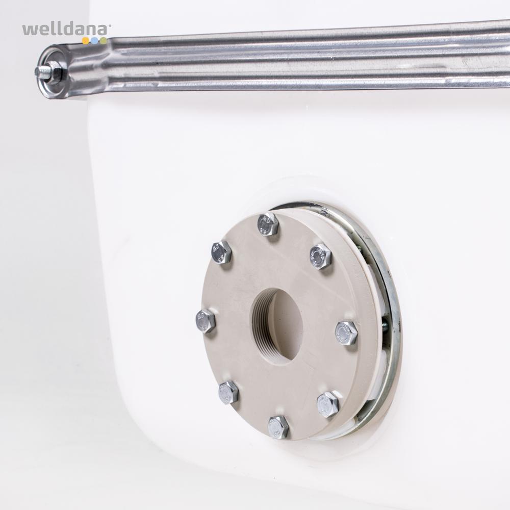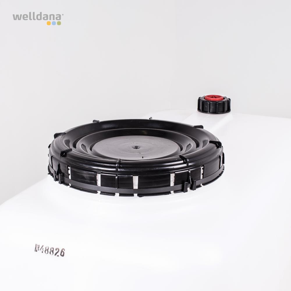 Welldana® Udligningstanke er produceret i kraftig Polythylen HD, som tåler opbevaring af klor (5ppm) – eller saltvand i temperatur op til 60°C. Er forsynet med galvaniseret forstærkninger på siden, 400 mm mandehul med låg i toppen samt udligningsstuds, på alle varianter.