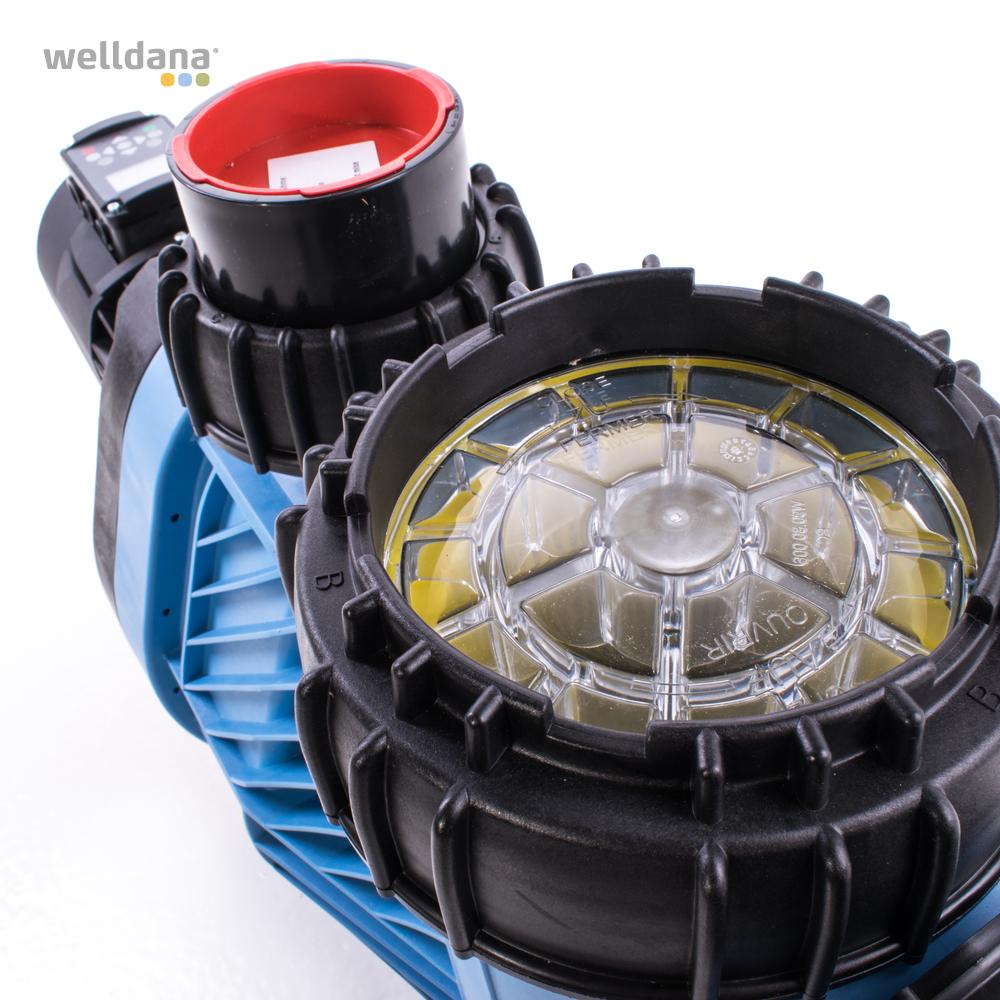 Badu® Eco Motion, en lydsvag frekvensstyret kvalitets pumpe fra Speck, med patenteret permanent magnet motor, for mest optimale driftsomkostninger og vandkvalitet. Leveres med et kraftig 6 liter PP forfilter, let aftagelig transparent låg, unionsæt og bespændingsværktøj for omløber.