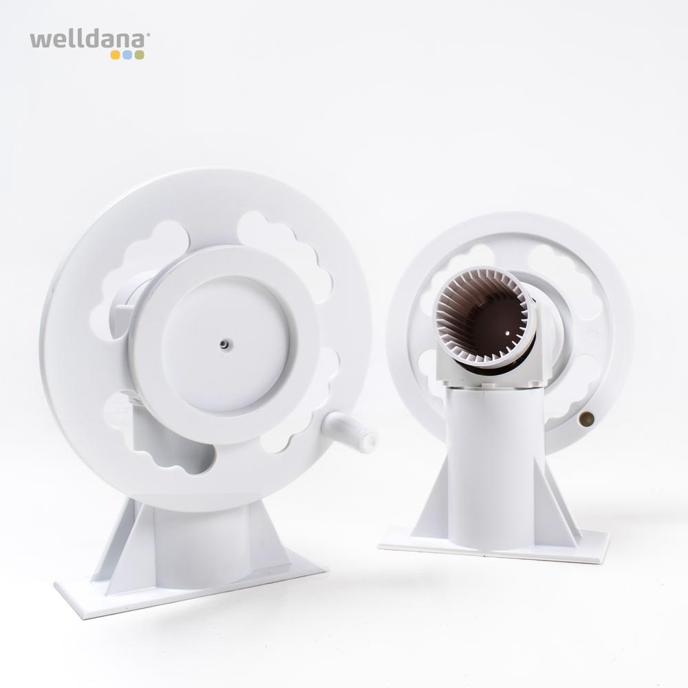 Welldana® ABS oprulningsstativ for termodækken til pool. Produceret i kraftig, solid hvid plast og beslag for 3” teleskoprør. Ideel for indvendig og udendørs pool cover, der ikke skal flyttes. Leveres uden teleskoprør (32-001003) og bolte for fastgørelse.
