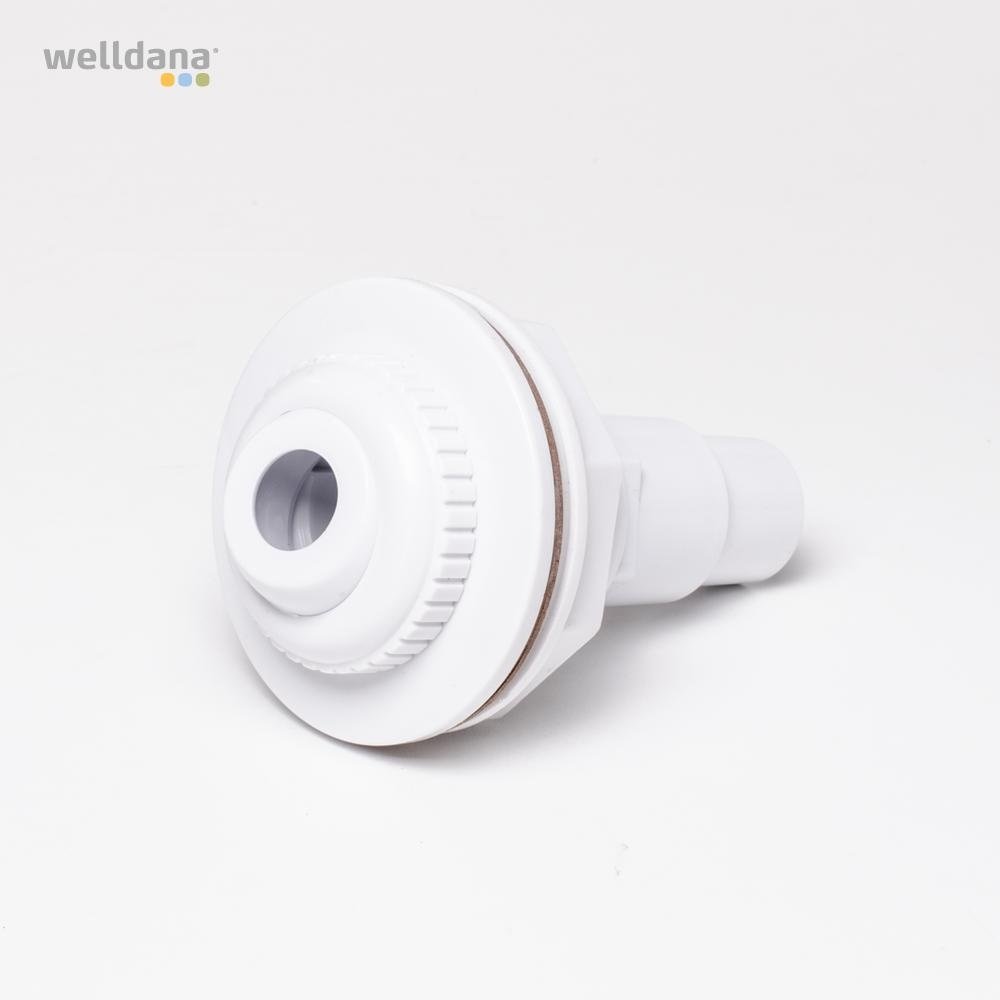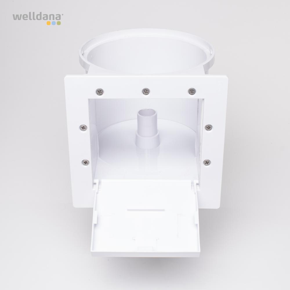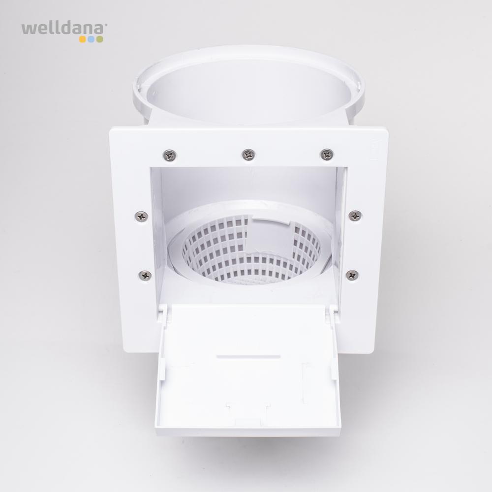 Welldana® standard ”small” skimmer sæt er en solid og velkendt skimmer, til mindre og mellemstore pools. Skimmeren kan monteres i alle typer pools og er særdeles velegnet til fritstående pool p.g.a det kompakte hus. Skimmeren er produceret i ABS plast og leveres komplet med pakninger, skimmerklap, skimmerkurv, plade for støvsugerslange og rundt låg. Der medfølger 1½” slangestuds for montering af 32/38 mm slange og 1 stk. indløbsventil (37-180091).