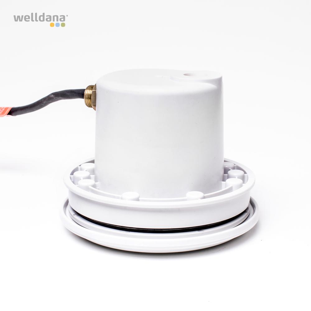 Welldana® Mini poollampe for liner pool, fremstillet i hvid ABS plast. Giver et meget fornuftig lys i vandet, til meget fornuftig pris. Leveres komplet til montering i mange typer pool og med 2 meter kabel.