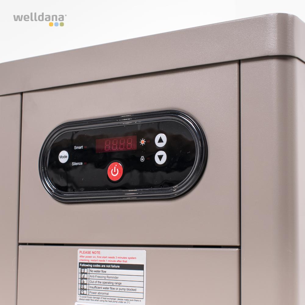 Welldana® FPH Comfort Inveter, en højeffektiv pool varmepumpe, 65% større COP end on/off modeller og designet for luft temp. ned til 0°C.
